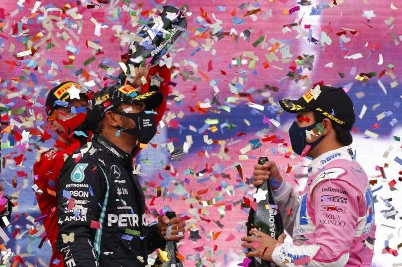Pérez subió a lo más alto del podio en el Circuito Internacional de Baréin. El segundo puesto fue para Esteban Ocon, y el tercero para su co-equipero Lance Stroll.