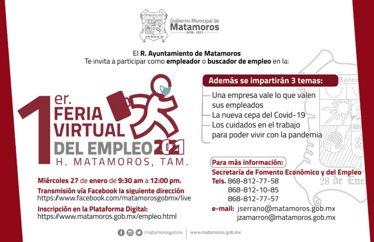 Invita Gobierno de Matamoros a Primera Feria Virtual del Empleo 2021